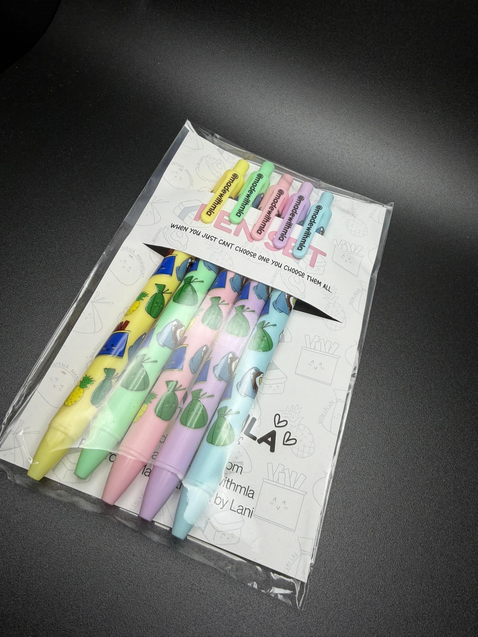 Each set includes 5 pens for $7.